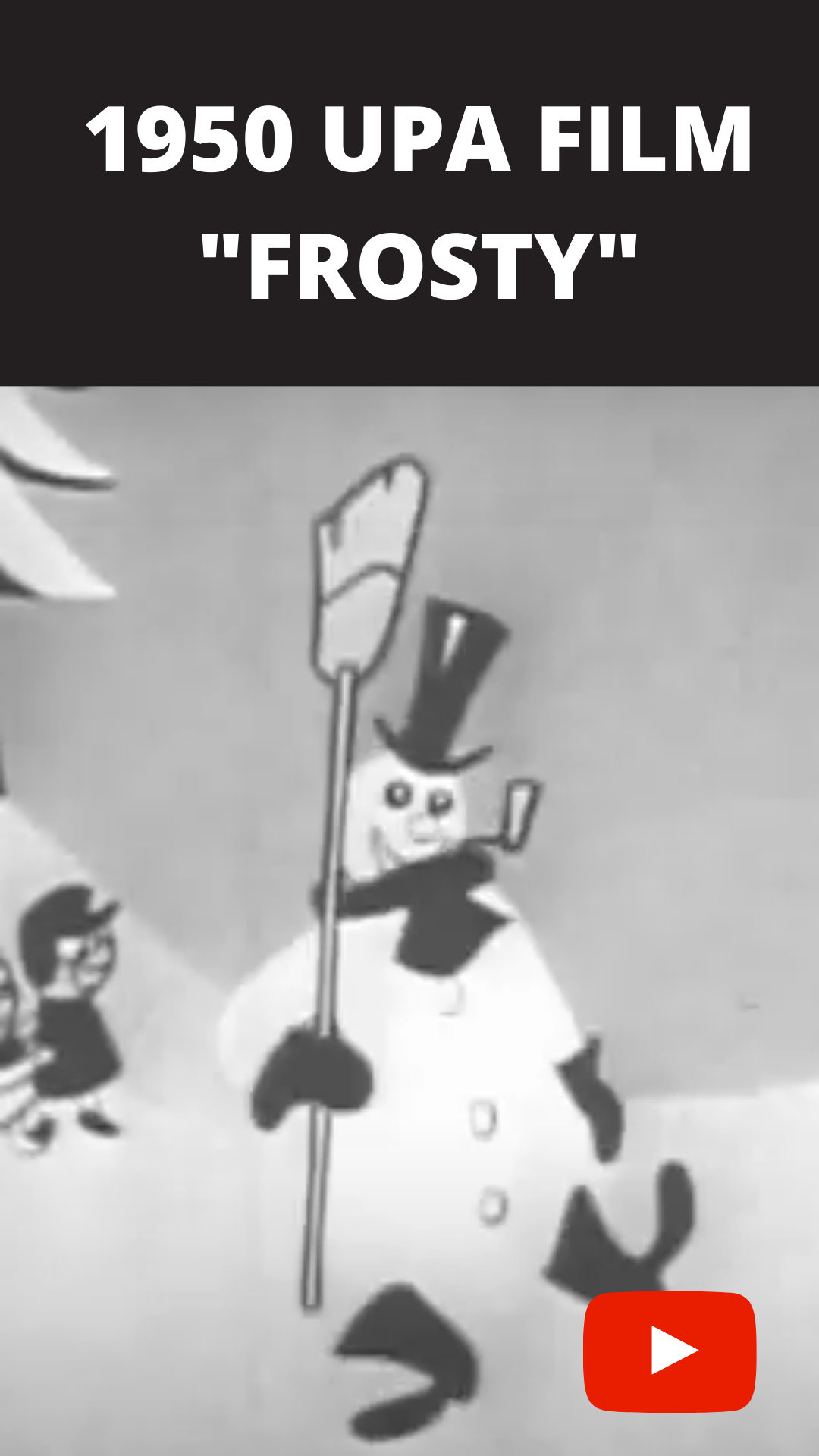 In 1950, the UPA studio brought "Frosty" to life in a three-minute animated short which appears regularly on WGN-TV. This production included a bouncy, jazzy a cappella version of the song and a limited animation style reminiscent of UPA's Gerald McBoing-Boing.